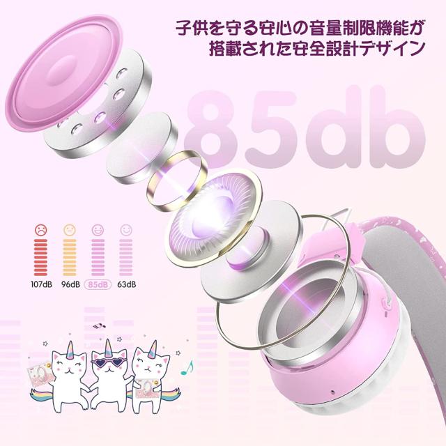 ヘッドセットには、聴覚医療機関が推奨する最大騒音レベルである85デシベルでキャップアウトするボリューム制限が含まれています。3〜8歳のお子様に適しています。