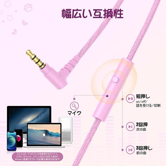 設計された共有ポートにより、別のヘッドフォンと簡単に接続できます。コードには一時停止/再生ボタンがあり、オンラインスクールレッスン、ビデオ、映画などを簡単に開始や停止の操作ができます。