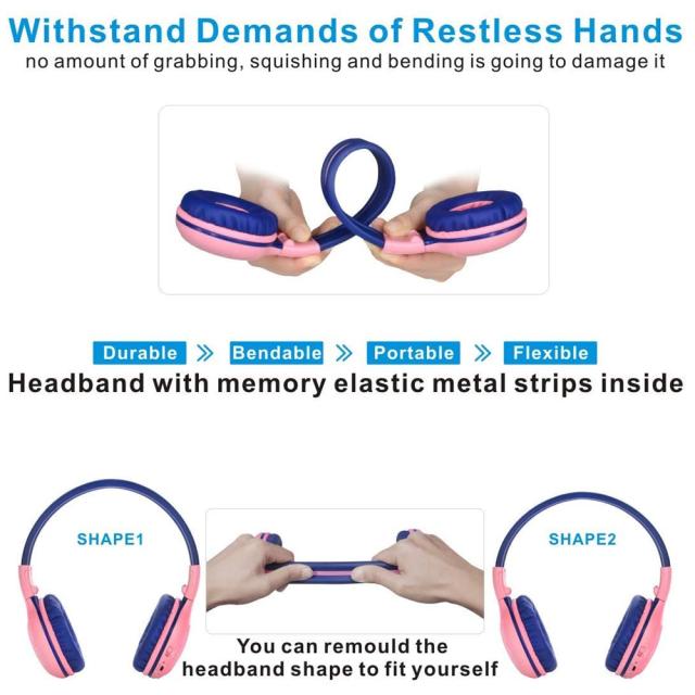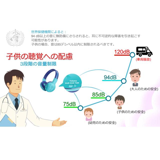 3つの切り替え可能なボリューム制限レベルを備えたキッズBluetoothヘッドフォン