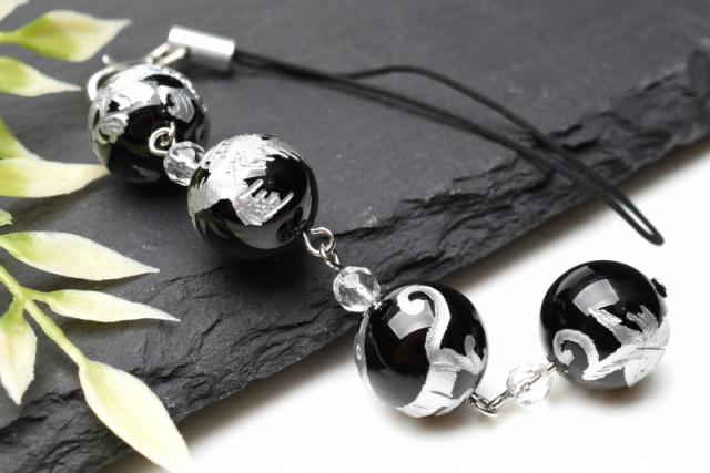 聖獣の守 幸を呼び込む四神ゆらゆらストラップ(オニキス銀彫) 当店オリジナル パワーストーン_A1105-2