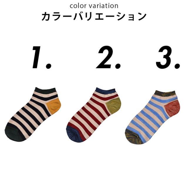 メンズ くるぶしソックス ボーダー | おしゃれ オシャレ 面白い おもしろ 靴下 ネタ お洒落 インスタ映え SOCKS 個性的 目立つ プレゼント お祝い グッズ 衣装
