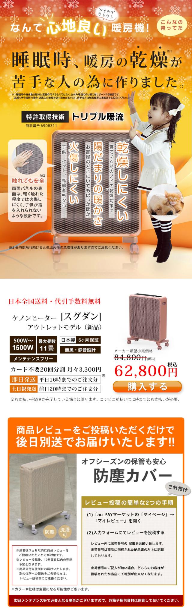 赤ちゃん、ペット、子供に安全。喉、美顔、結露も安心。美容機ケノンブランドが開発!《遠赤外線+輻射熱+自然対流のトリプル 暖房器具》日本製 6ヶ月保証 ケノンヒーター 暖房機 セラミックヒーター 遠赤外線ヒーター パネルヒーター 節電 省エネ スグダン【アウトレット】