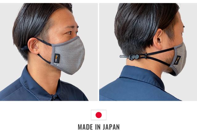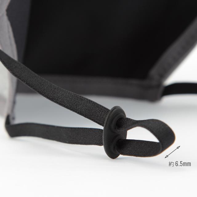 耳ゴムは平型で耳が痛くなりづらい仕様です。両側に備えたアジャスターはラバー素材で、適度な長さを保持します。