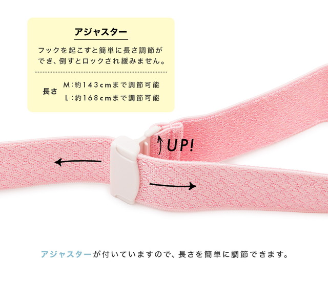 アジャスターでゴムの長さも調節でき伸縮に優れ、緩まず胸を締め付けません。