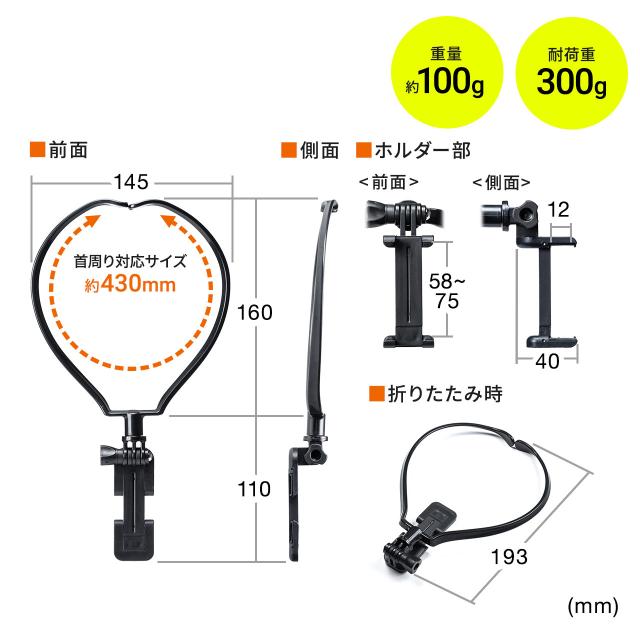 スマホ ネックホルダー 動画撮影用 首掛け スマホホルダー[200-DGCAM033]