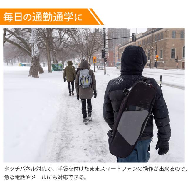 - 東北地方に住むものですが、暖かくて、冬本番に使うのが楽しみです。 撥水効果もバッチリそうですが、スマホの細かい操作は難しいかもです。