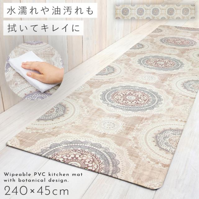キッチンマット 240,キッチンマット 拭ける,キッチンマット pvc,キッチンマット,240,45,240×45,拭ける,PVC,洗濯不要,水拭き,ふける,塩化ビニール,抗菌防臭,抗菌,防臭,防カビ,防炎,マット,ラグ,カーペット,ラグマット,キッチンラグ,キッチンカーペット,台所マット,台所ラグ,フロアマット,滑り止め,すべり止め,滑りにくい,すべりにくい,ズレにくい,ずれにくい,おしゃれ,お洒落,オシャレ,かわいい,可愛い,インテリア,キッチン,台所,部屋,賃貸,マンション,アパート,トータルコーディネート,一人暮らし,二人暮らし,家族,ファミリー,同棲,新生活,新居,引っ越し,レース,ベージュ,ナチュラル,
