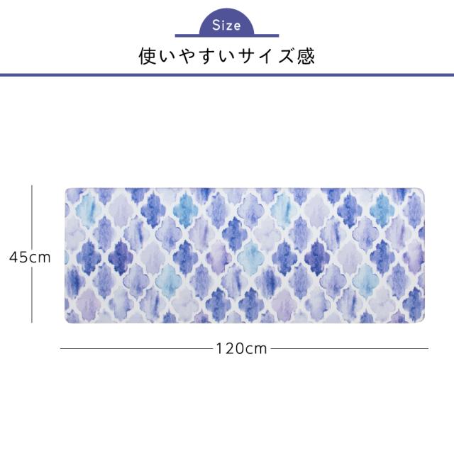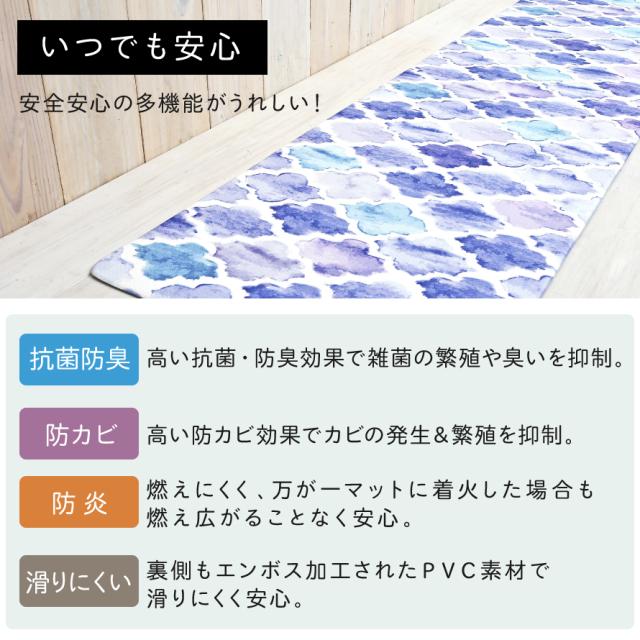 キッチンマット 120,キッチンマット 拭ける,キッチンマット pvc,キッチンマット,120,45,120×45,拭ける,PVC,洗濯不要,水拭き,ふける,塩化ビニール,抗菌防臭,抗菌,防臭,防カビ,防炎,マット,ラグ,カーペット,ラグマット,キッチンラグ,キッチンカーペット,台所マット,台所ラグ,フロアマット,滑り止め,すべり止め,滑りにくい,すべりにくい,ズレにくい,ずれにくい,おしゃれ,お洒落,オシャレ,かわいい,可愛い,インテリア,キッチン,台所,部屋,賃貸,マンション,アパート,トータルコーディネート,一人暮らし,二人暮らし,家族,ファミリー,同棲,新生活,新居,引っ越し,モロッカン,柄,パープル,紫,ブルー,青,