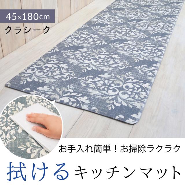 【180cm×45cm】 キッチンマット 180 拭ける pvc 180×45cm ブルー キッチン マット 滑り止め 抗菌防臭 防カビ 防炎 塩化ビニール おしゃれ キッチンマット180 クラシーク