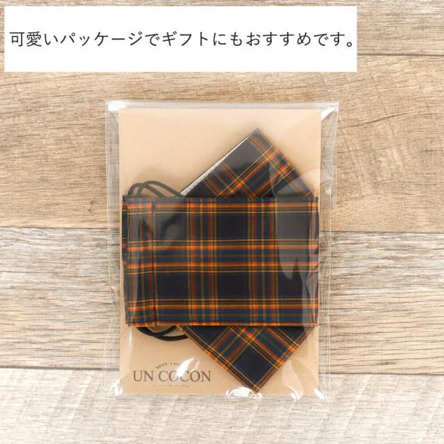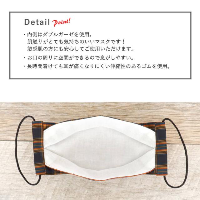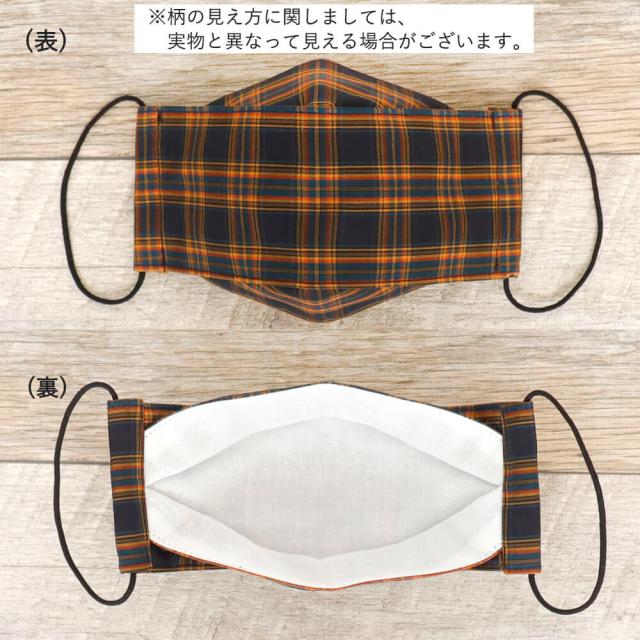 布マスク 大人マスク 舟形 大臣マスク タータンチェック オレンジ 日本製 綿 洗えるマスク 送料無料 メール便2ポイント