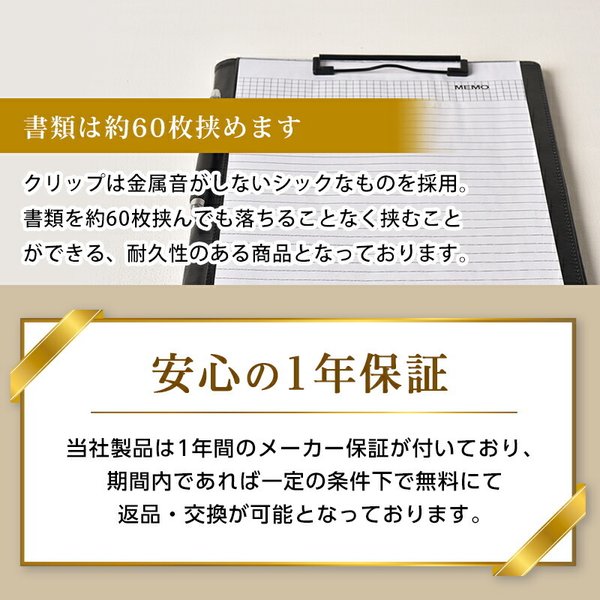 書類を約60枚挟んでも落ちることなく挟め、耐久性のある商品となっております。