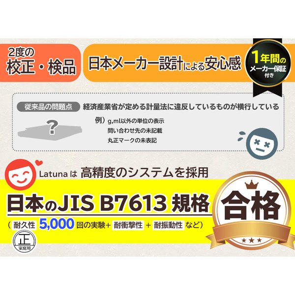 より精度の高い値表示を実現するため、すべての商品を、工場出荷時と検品時の【2度校正】したものをお届けします。