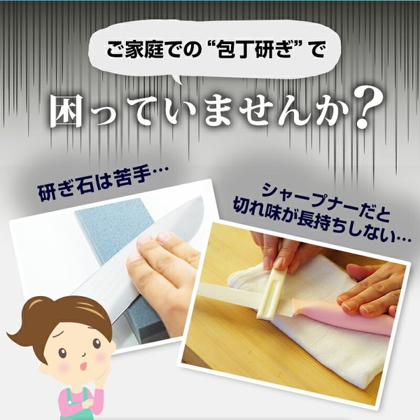 - ちゃんとした砥石と迷ってこちらの商品を購入しましたが、とりあえず適当にササッと研いだだけで切れ味良くなりました! 手軽にできて収納にも場所取らず買ってよかったです。