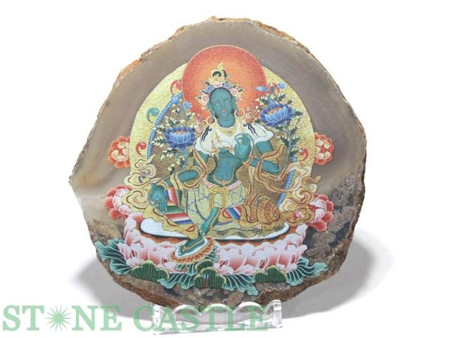 ☆高品質☆【天然石 置き石】メノウプレート (台付) 多羅菩薩 (緑)