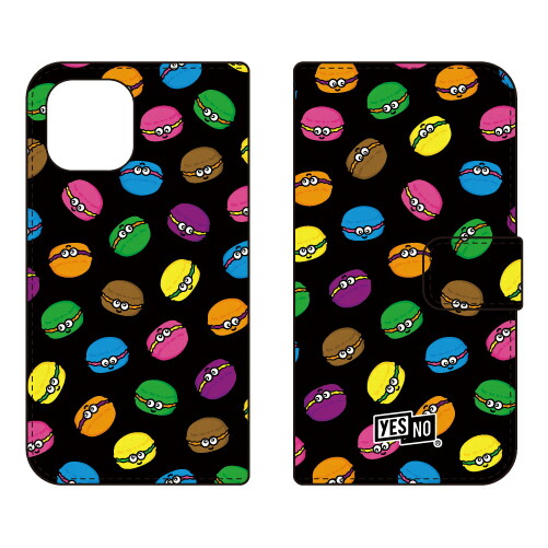 手帳型スマートフォンケース マカロンズ ブラック / for iPhone 12/Apple YESNO iphone12 ケース iphone12 カバー アイフォーン12 ケース アイフォン 12 送料無料