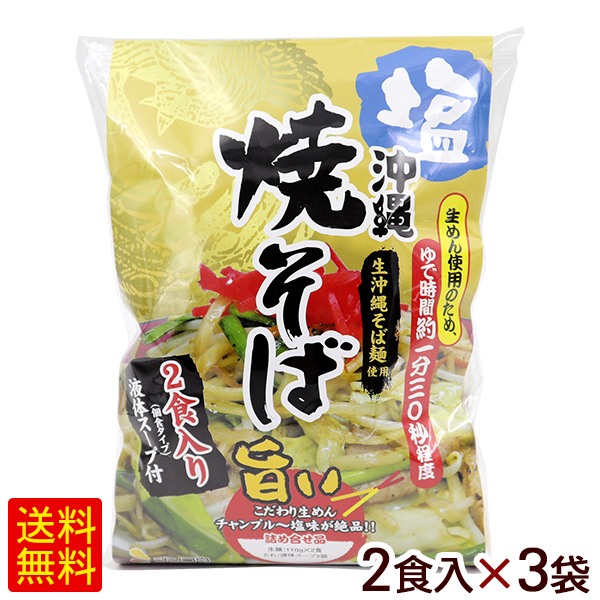 沖縄 塩焼きそば 2食入×3袋(6人前) /生麺 沖縄そば シンコウ
