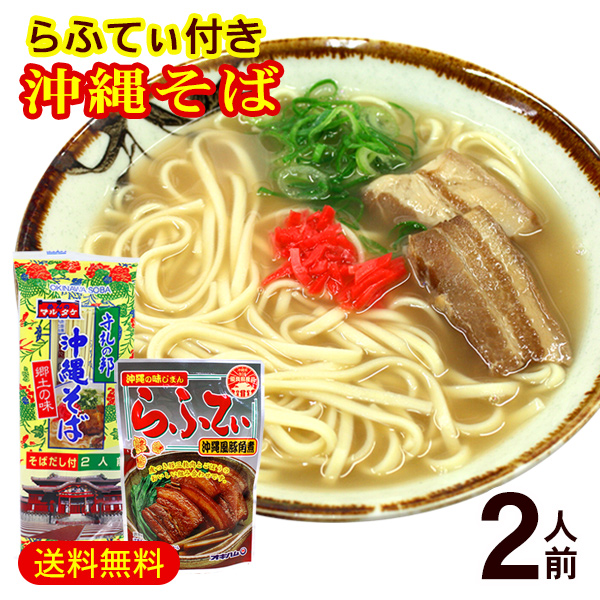 マルタケ 沖縄そば 2人前 (沖縄風豚角煮ラフテー付き) /乾麺 三枚肉そば 沖縄お土産 年越しそば 【M便】