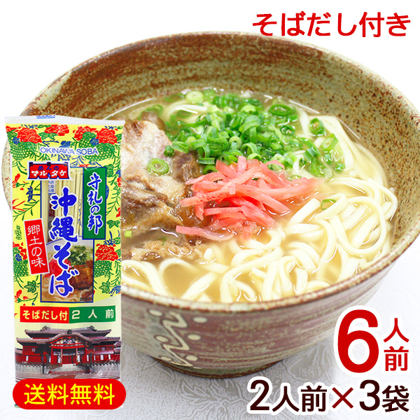 マルタケ 沖縄そば 2人前×3袋(6人前) そばだし付き /乾麺 沖縄お土産 【M便】