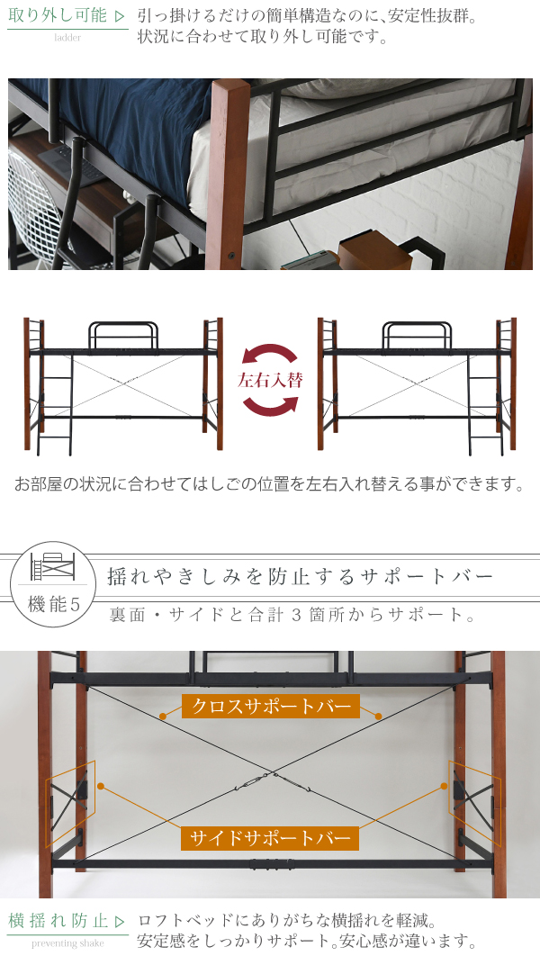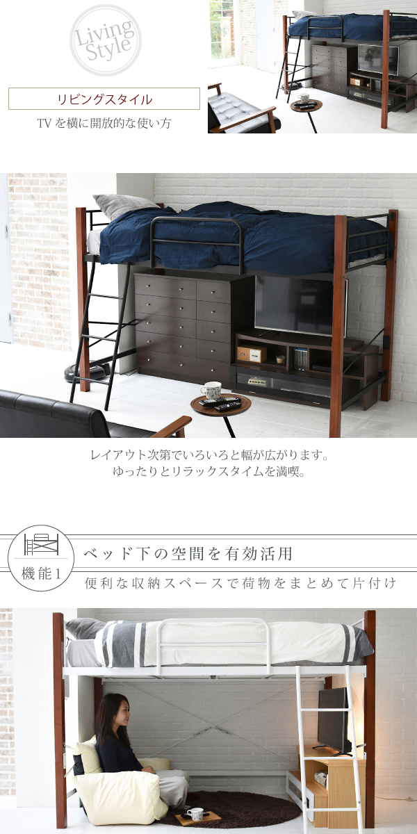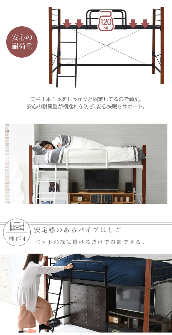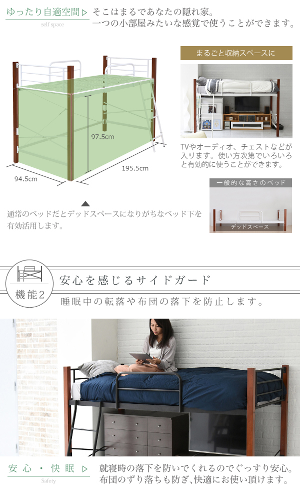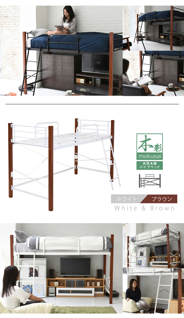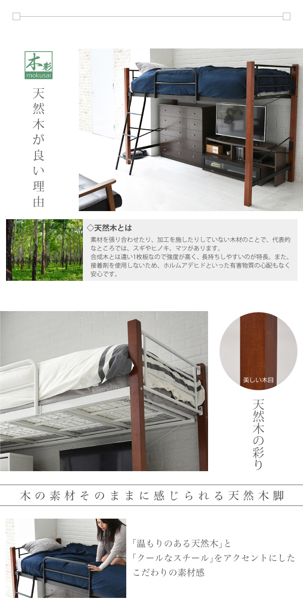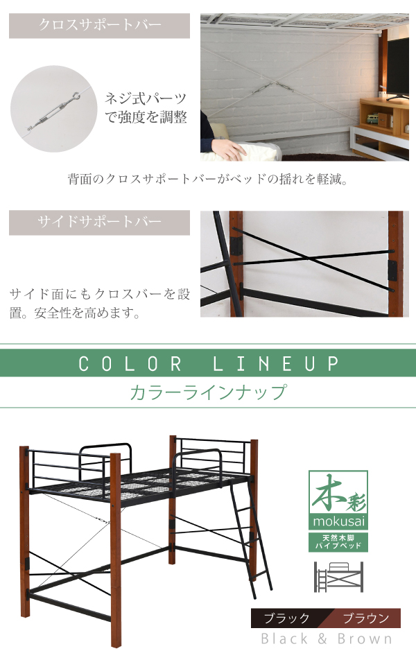 木彩 モクサイ ベッドフレーム Sサイズ ハイタイプ (ベッドフレーム パイプベッド 可変型ベッド 高級感 機能性 安心感 通気性 収納スペース 天然木 サイドガード メッシュ床 ブラックブラウン ホワイトブラウン おしゃれ おすすめ)