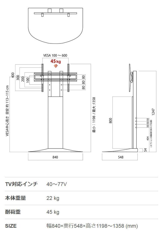薄型テレビ:40V〜77Vまで対応可能。