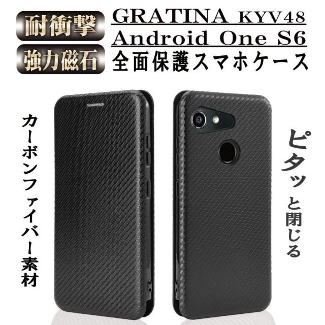 au GRATINA(グラティーナ)KYV48/Android One S6 スマホケース スマホカバー 手帳型 薄型 カーボンデザイン 耐衝撃 強力マグネット カード収納 落下防止リング付 全面保護 送料無料