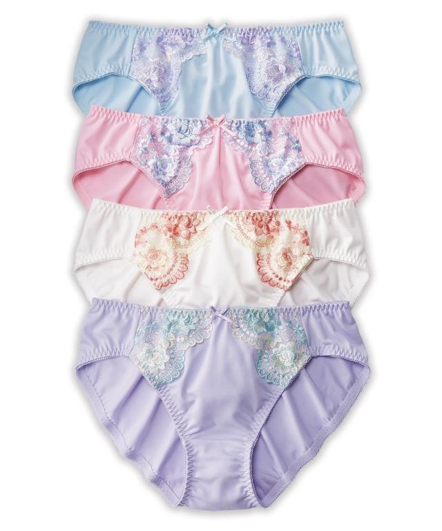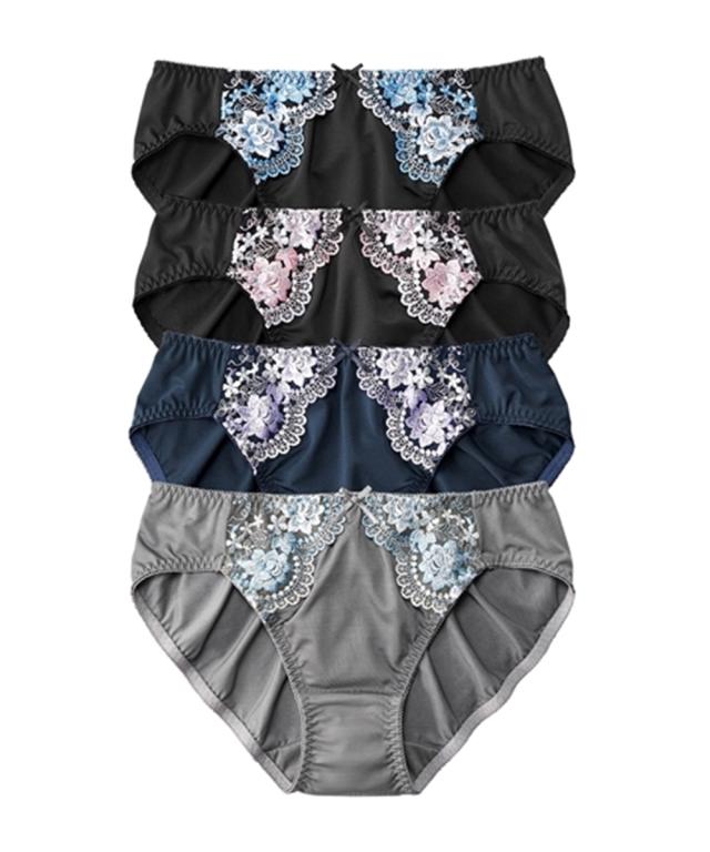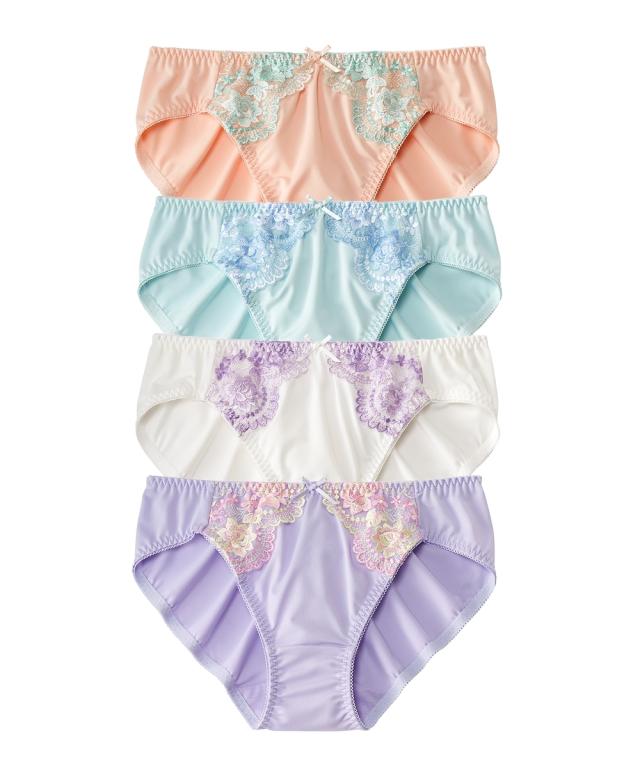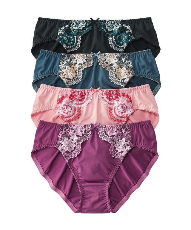 花柄刺しゅうレギュラー丈ペアショーツ4枚組