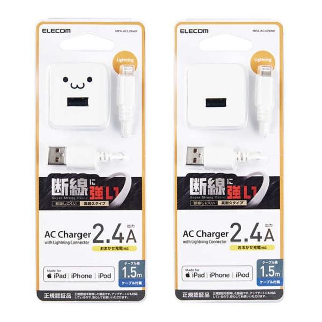 家庭用コンセントからLightningコネクタ搭載のiPhoneやiPodを充電できるLightningケーブルを付属したAC充電器です。カラーバリエーションは、ホワイトフェイス(JAN:4549550192149/品番:MPA-ACL09WF)、ホワイト(JAN:4549550192156/品番:MPA-ACL09WH)です。携帯に便利なコンパクト設計のキューブ型デザインを採用しています。スマートフォンやタブレットに付属もしくは対応する充電用USBケーブルを使用して充電可能です。付属のLightningケーブルは、充電だけでなくパソコンとのデータ通信にも使用可能です。壁面のコンセントに接続してもゆとりのあるケーブル長1.5mを採用しています。ケーブルには高密度配線構造、屈曲に強い強化ブッシュ、傷がつきにくいナイロンメッシュ外皮を採用し、断線しにくい構造になっています。コンパクトサイズでありながら、未使用時は電源プラグを折りたたんで充電器本体に収納できるので持ち運びに便利です。※端末本体や充電器が濡れた状態で充電すると、異常な発熱・焼損の原因となり大変危険ですのでおやめください。