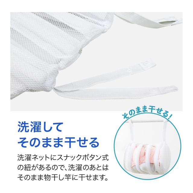 スナックボタン式の紐があるので、洗濯した後はそのまま物干し竿に干せます。