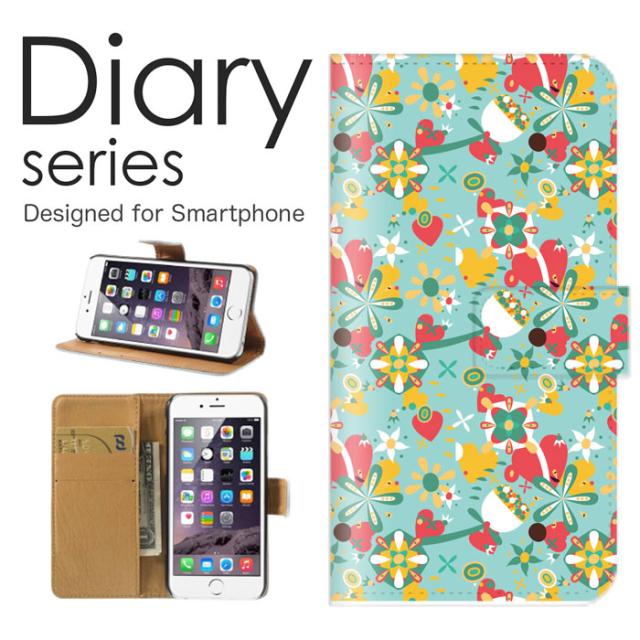 スマホケース iPod touch7 ケース 手帳型 カバー アイポッド7 手帳型ケース 送料無料 カラフル 模様 POP ポップ デザイン かわいい イラスト 花 フラワー 鳥 バード 春 花びら 花柄 インコ うぐいす