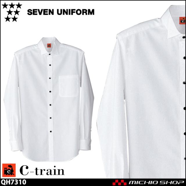 飲食サービス系ユニフォーム セブンユニフォーム C-train シートレイン 綿100% 長袖 ウイングカラーシャツ QH7310 男女兼用 SEVEN UNIFORM 白洋社