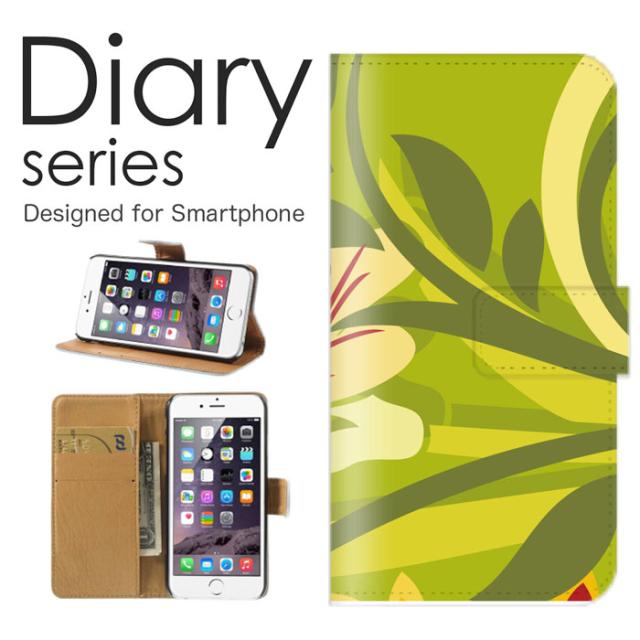 スマホケース Qua phone PX LGV33 ケース 手帳型 カバー キュアフォン PX LGV33 手帳型ケース 送料無料 シンプル フラワー ウニッコ柄 黄緑 グリーン 緑 ブーメラン ふにゃっとした パターン 総柄 イラスト