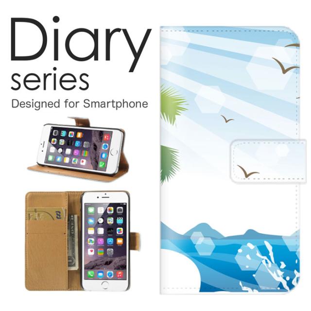 スマホケース Galaxy A70 ケース 手帳型 カバー ギャラクシー A70 手帳型ケース 送料無料 海 ヤシの木 バカンス 南国 ハワイアンデザイン サーファー ビーチ パラソル ハワイ 島 砂浜 快晴 夏 グァム 無人島