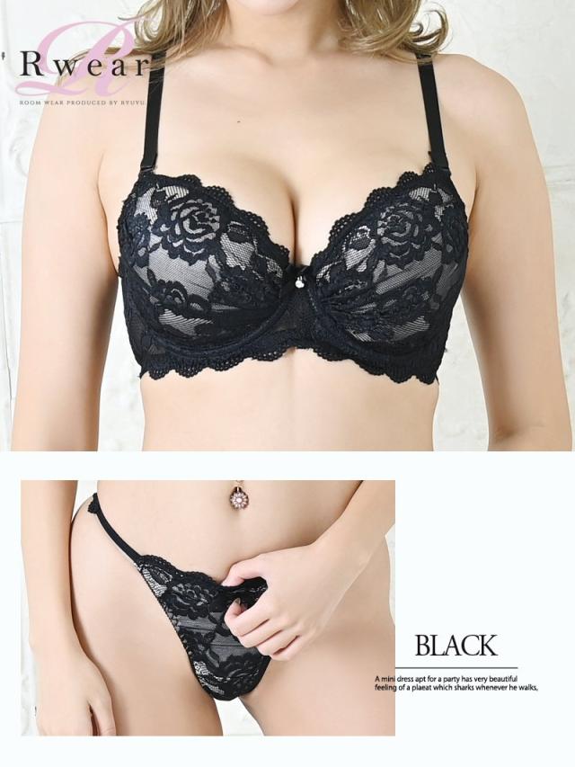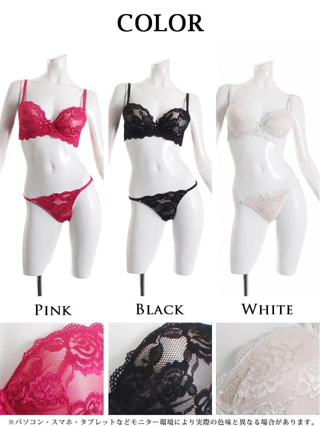 ☆刺繍花柄レース×ヌーディーデザイン仕立てたセクシーなレディース下着はブラジャー 、フルバック 、 Tバックの3点セットのブラ&ショーツ♪
