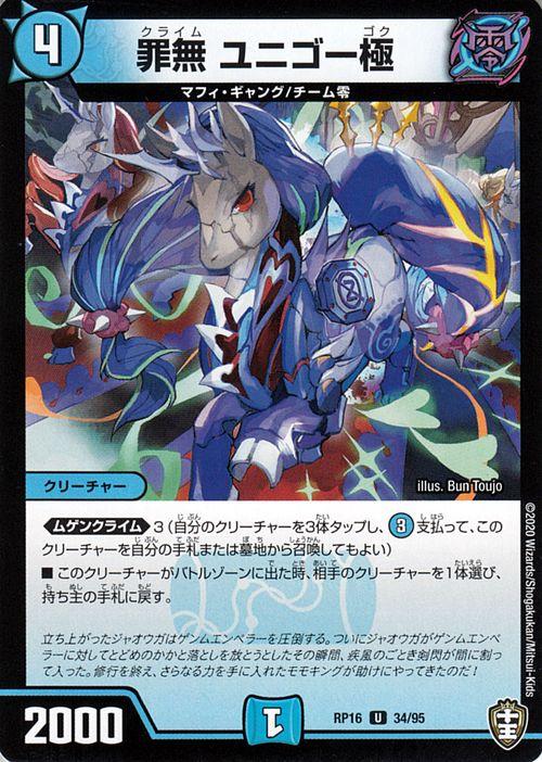 デュエルマスターズ 罪無 ユニゴー極 アンコモン 百王×邪王 鬼レヴォリューション!!! DMRP16 デュエマ 水文明 クリーチャー