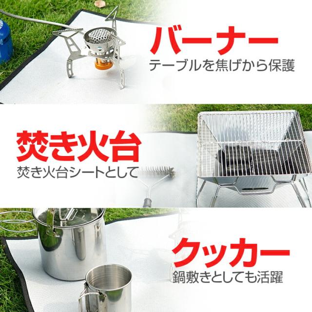 バーナー使用時のテーブル焼けの防止や、焚き火台シートとして、またクッカー等の鍋敷きとしてなど幅広い用途で活躍してくれます。