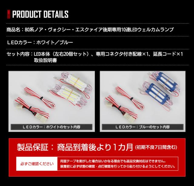 | 商品名 | 80系ノア・ヴォクシー・エスクァイア後期専用 10連LEDウェルカムランプ |