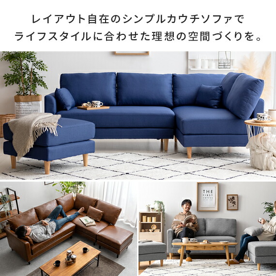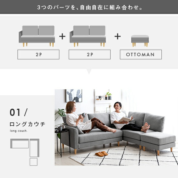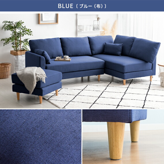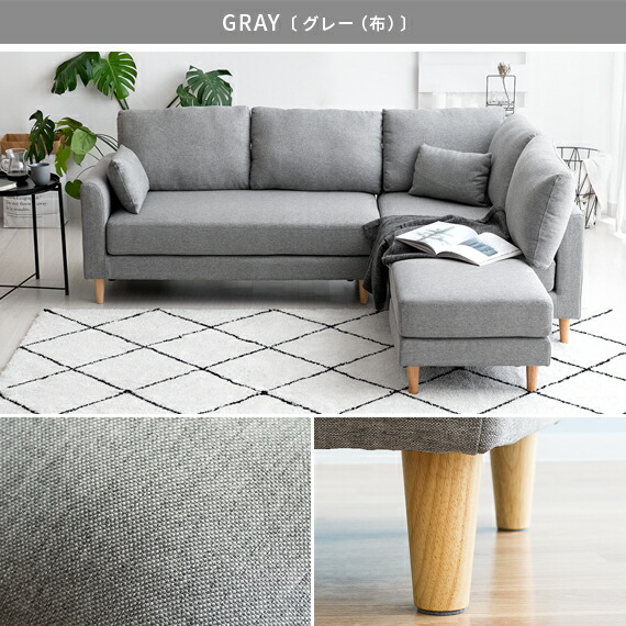 ソファ ソファー 3人掛け 北欧 おしゃれ ローソファ ファブリックソファ sofa モダン ミッドセンチュリー シンプル リビング 布製 ファブリック 3P 4P オットマン付きカウチソファ mark〔マルク〕 グレー ブラウン ブルー ベージュ ダークベージュ グリーン