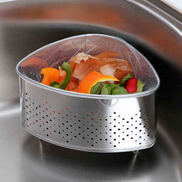 ●汚れや臭いが付きにくい抗菌ステンレス鋼製の三角コーナーです。
