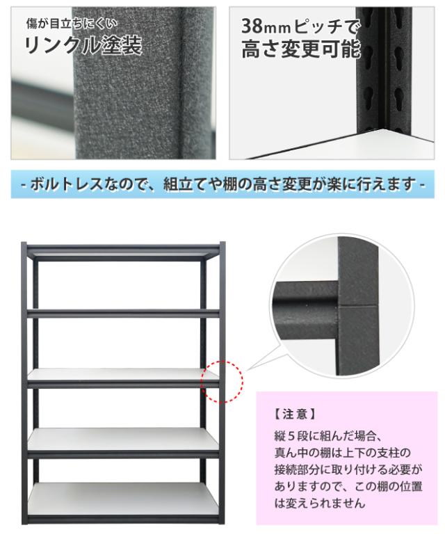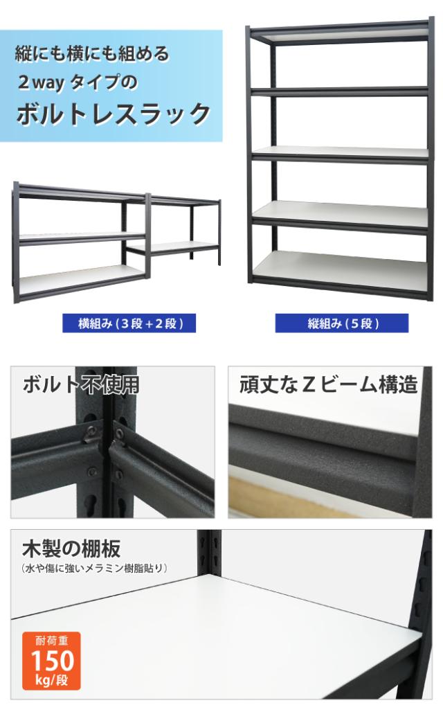 ボルトレスラック スチールラック 業務用 5段 150kg/段 2way 収納棚 オフィス ガレージ 収納 KIKAIYA