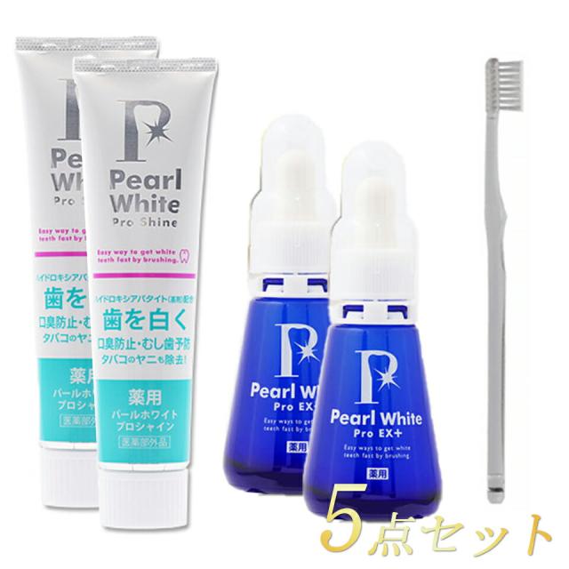 \ポイント消化!/ 【送料無料】【お買得5点セット】[薬用パールホワイトプロ EXプラス 30ml 2本] +[プロシャイン120g 2本] +[ホワイトニング専用歯ブラシ] ホワイトニング 歯磨き 液 ホームホワイトニング 歯磨き粉 黄ばみ ヤニ 液体歯磨き PT倍増