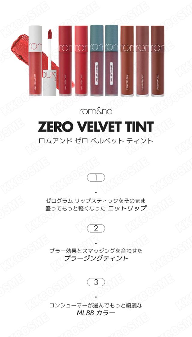 romand ロムアンド ゼロ ベルベット ティント 各5.5g ゼログラムリップスティックそのまま ワイナリーベルベットシリーズ追加 単品 韓国コスメ 正規品