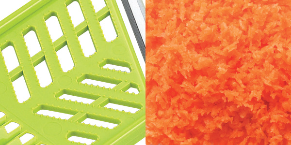 色々な野菜に使える安全ホルダーが付いています。おろし器の刃で手を切る心配もなく、小さな野菜も最後まで使い切れます。
