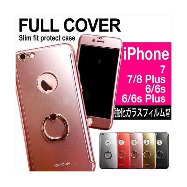 全面保護 フルカバー iPhone7 iPhone7/8Plus iPhone6/6s iPhone6/6sPlus iPhone ケース リング付き 強化ガラスフィルム付き
