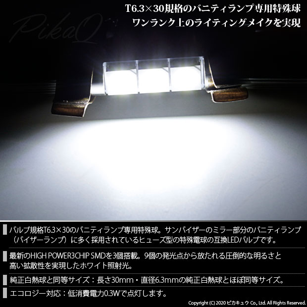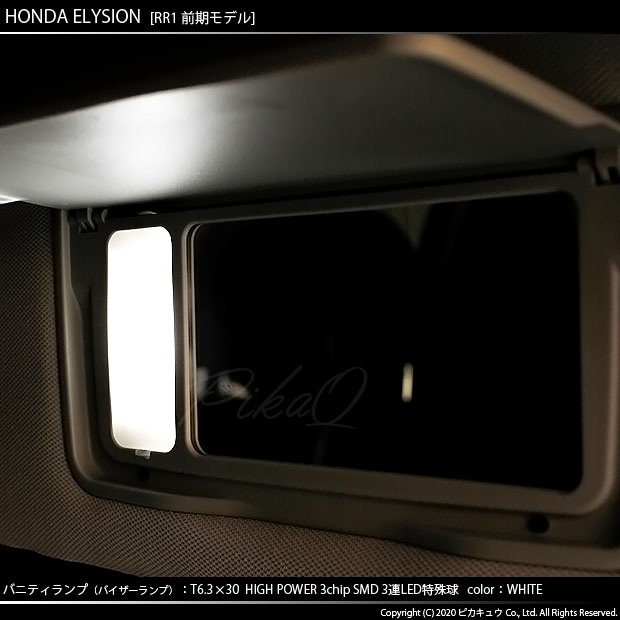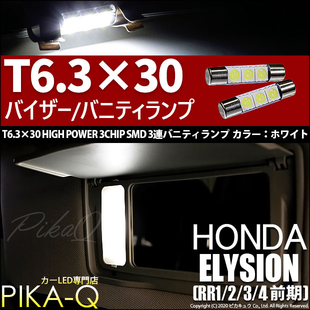 HONDA ELYSION[RR1/2/3/4 前期モデル]対応バニティランプ用LEDバルブ T6.3×30 HYPER 3chip SMD LED 3連バニティランプ LEDカラー:ホワイト 1セット2個入り | |||