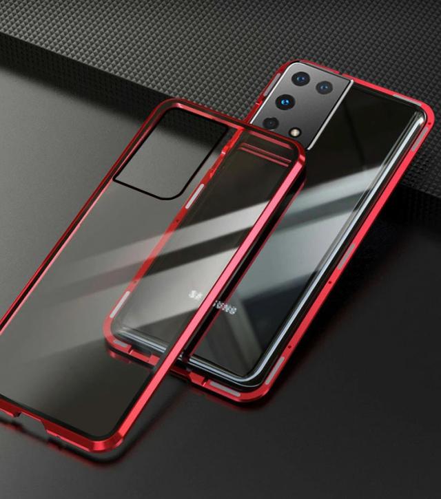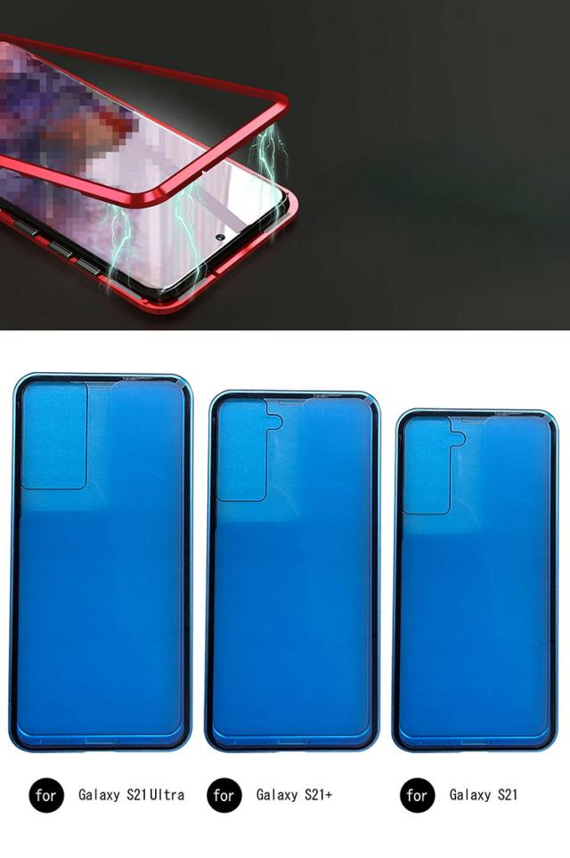 Galaxy S21/S21+/S21 Ultra ケース アルミバンパー 金属 メタル 持ちやすい 耐衝撃 クリア 両面強化ガラス 軽量 持ちやすい カバー があふれ 人気 メタルサイドバンパー Samsung サムスン ギャラクシー S21 SCG09 SC-51B/S21 プラス SCG10/S21 ウルトラ SC-52B