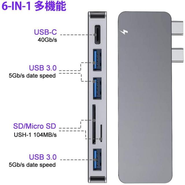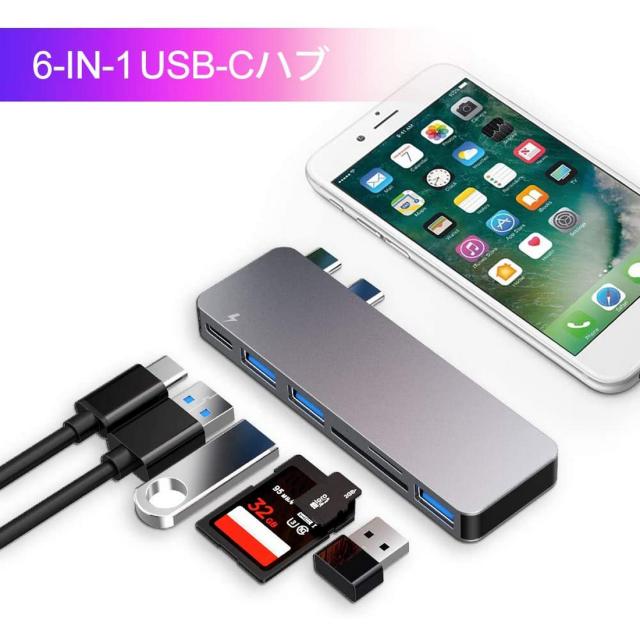 USB Type C ハブ MacBook Pro/Air 最新型 6-IN-1 USB-C ハブ 【代引き不可】