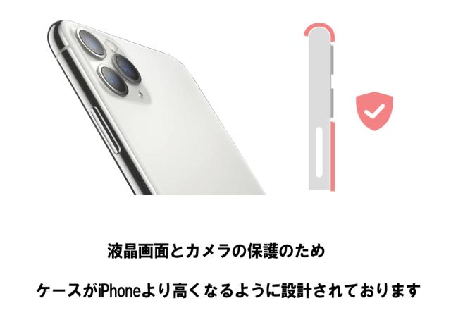 液晶画面とカメラの保護のためケースがiPhoneより高くなるよう設計されております