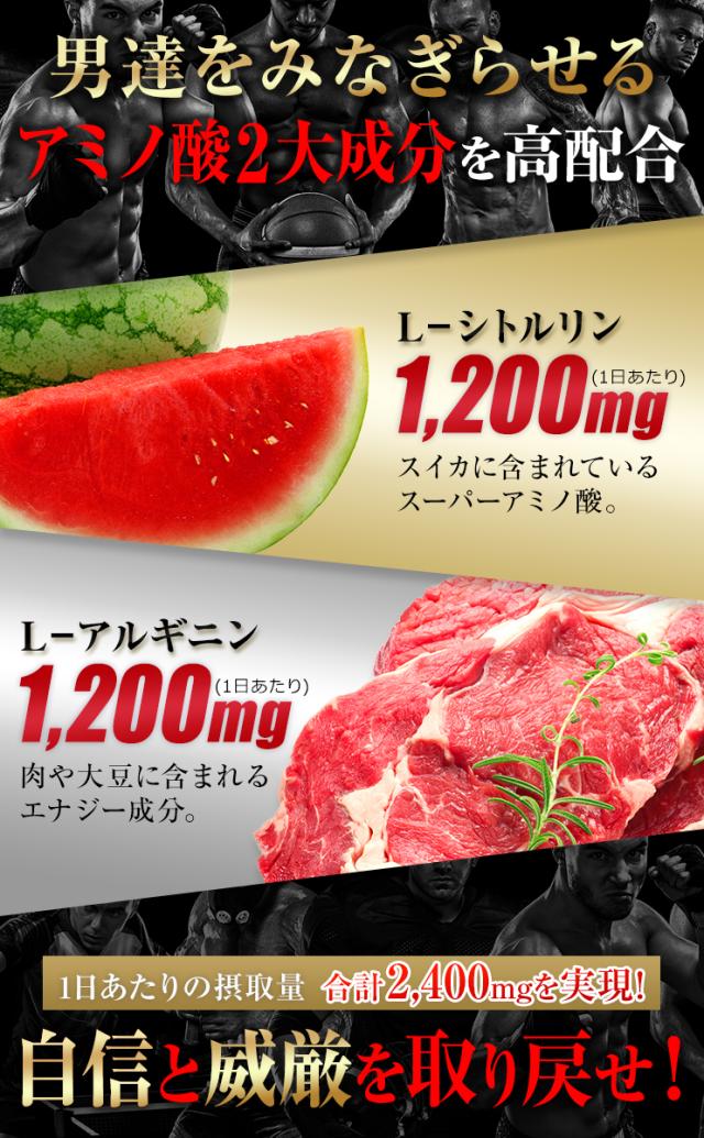 【配合成分】男性の体をバックアップする、シトルリン アルギニンに加えて海のミルクと呼ばれる必須ミネラル 亜鉛 を配合しています