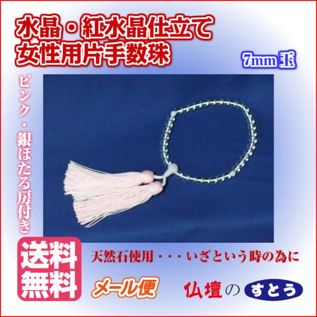 御念珠女性用片手 水晶・紅水晶仕立 7mm玉【送料無料】メール便 葬儀 法事