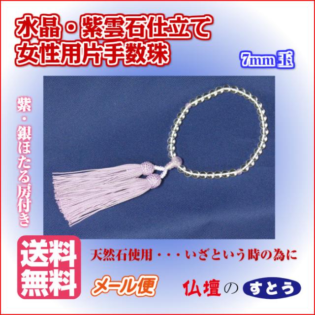御念珠女性用片手 水晶・紫雲石仕立 7mm玉【送料無料】メール便 葬儀 法事